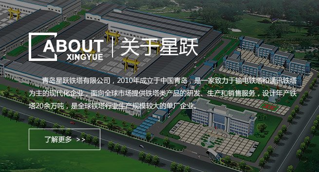 放眼全球鐵塔行業(yè),星躍鐵塔從廠(chǎng)區(qū)建設(shè)到裝備引進(jìn),均以非凡實(shí)力,樹(shù)立起世界鐵塔行業(yè)的現(xiàn)代化企業(yè)典范。