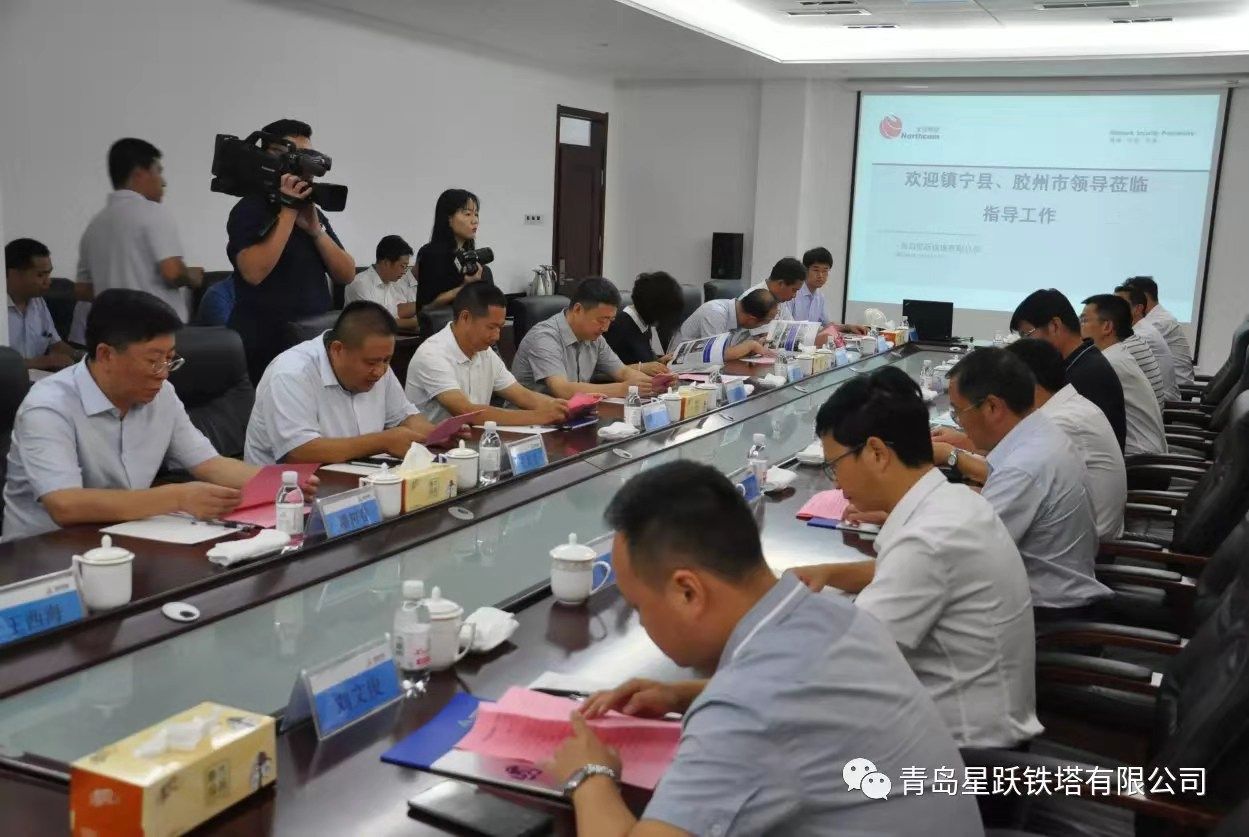 2019年8月22日上午,膠州市、鎮(zhèn)寧縣黨政代表團(tuán),到青島星躍鐵塔有限公司進(jìn)行“東西部-就業(yè)幫扶”專項(xiàng)工作調(diào)研。
